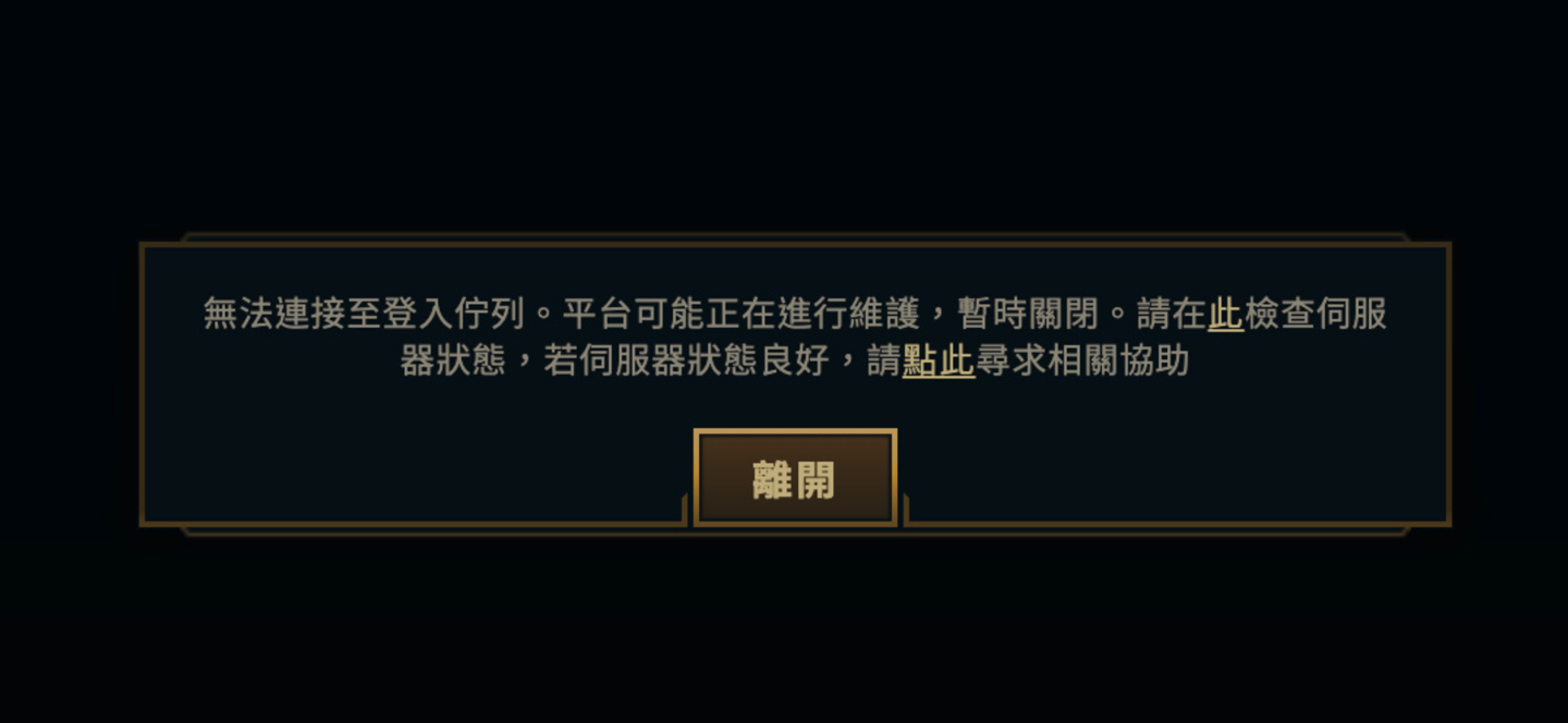 根據網友反饋,《英雄聯盟》臺服現在會以“正在更新維護”為由禁止異常 IP 玩家登錄。