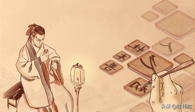 漢靈帝熹平四年(公元175年)有個叫蔡邕的官員,把一些儒家經典寫在石碑上,叫工人按字刻好,把石碑一塊塊樹在洛陽鴻都門外的太學前面,石碑上的字,筆畫都是凹進去的,人們就把一張堅韌柔軟的薄紙用水浸濕,敷在石碑上,然后用碎布、一槌接一槌拍過后,再在紙上刷一層墨汁。等紙稍干一點,再把它從碑上揭下來,成了一張黑底白字的讀物。這種方法就是拓碑。