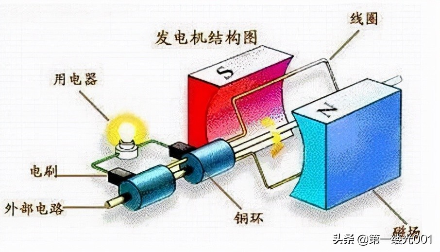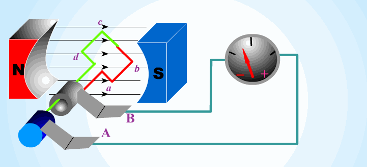 導體線圈和它的核心被稱為電樞,電樞連接到一個機械動力源的軸,例如,一個電機,銅導體可以在磁場中以異常增加的速度轉動。