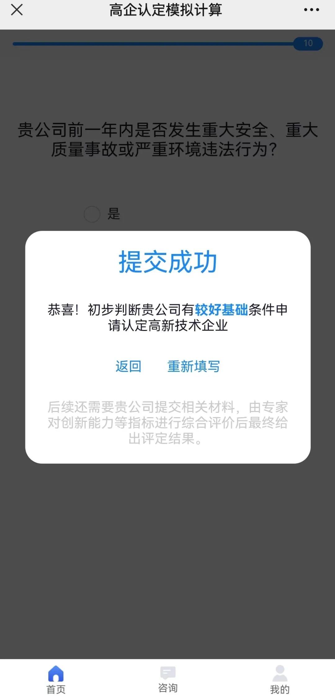 *溫馨提示:后續還需要貴公司提交相關材料,由專家對創新能力等指標進行綜合評價后最終給出評定結果。