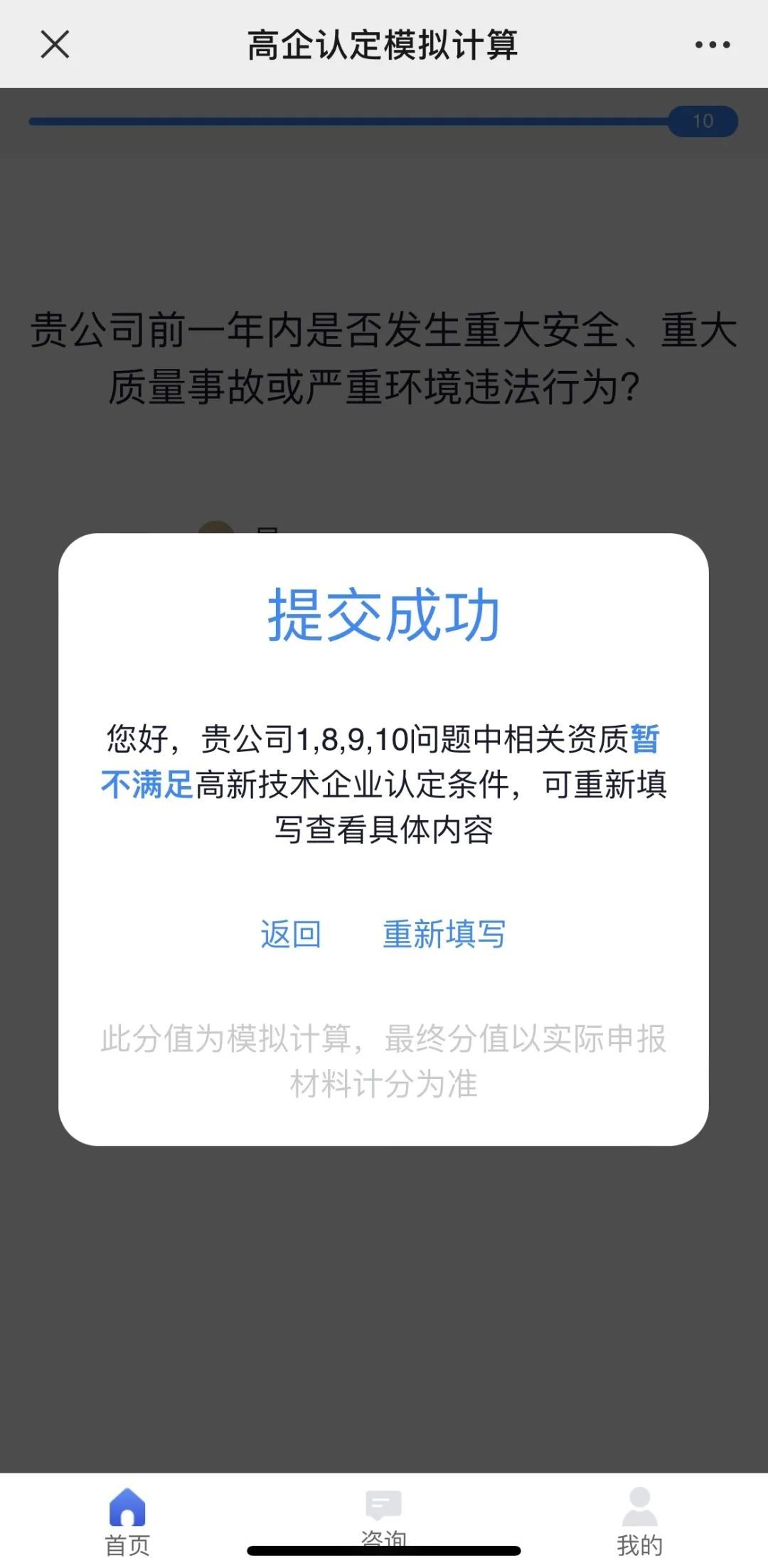 在系統中填寫對應的企業信息,即可快速了解本企業與認定政策的匹配度。