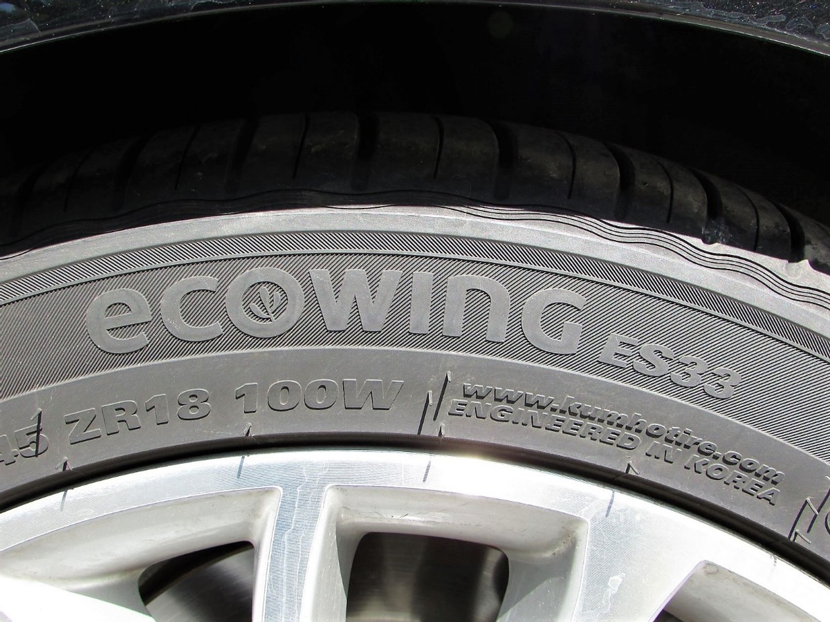 錦湖ecowing ES33輪胎是針對中國市場研發的一款節能環保舒適型輪胎,自面世以來憑借可圈可點的燃油經濟性、舒適性、干濕地抓地性能,受到了市場的追捧和消費者的認可。經過儀器測試,其溝槽深度是8.02mm,胎面硬度是67,胎壁硬度是51。它的型號是245/45 ZR18 100W,承載能力是800kg,最高時速270km/h,在性能指標上緊扣車輛性能。
