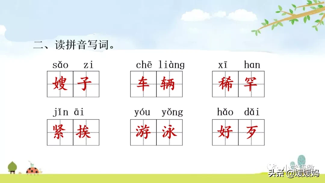 一、1.嫂子 一輛 2.一輩 3.罕見