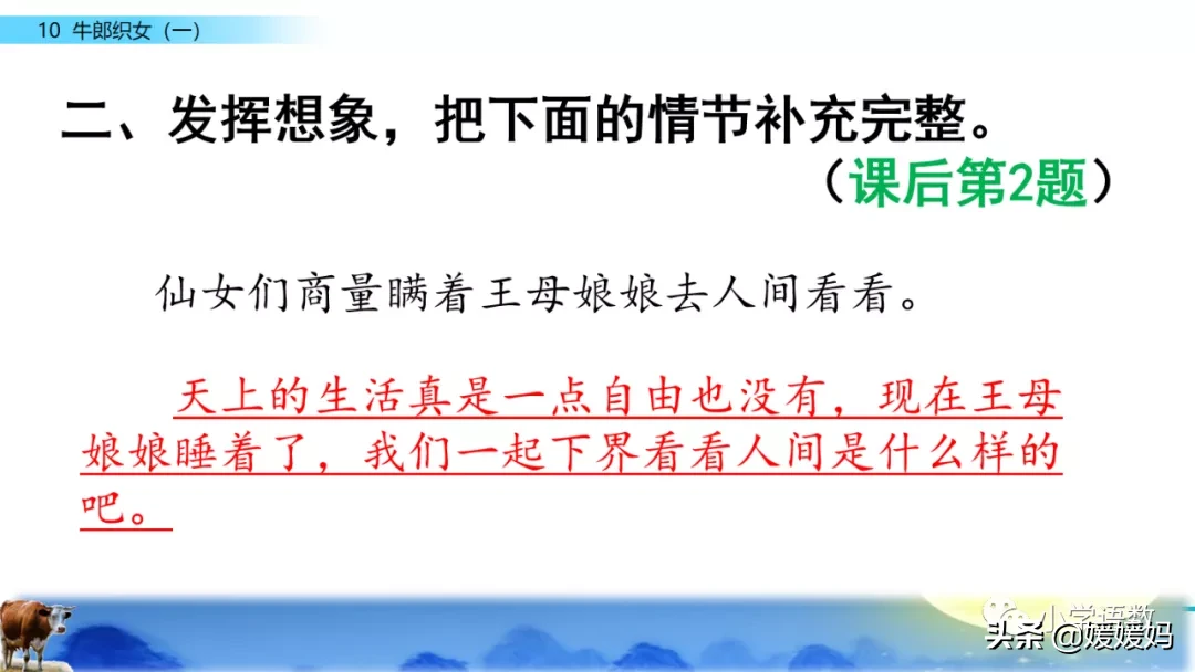 六、如果你是那頭老牛,受到牛郎這樣細心的照顧,你會說些什么?