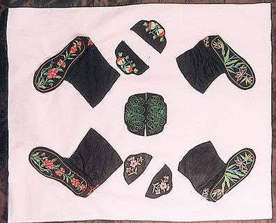 再說,腳的迎面襪子上有條縫,像條小蜈蚣似的,那有多難看呀,必須讓能工巧匠沿著前后合縫繡上花,掩蓋住合縫造成的缺陷,這樣一來,每雙襪子花費的工就大了。老太后的襪子不管多么精致,也只穿一次,決不再穿第二次。算起來,每天至少要換一雙新的。就算繡工是非常熟練的能手,也要七、八天才能繡成一雙,算來一年要用三千個工供老太后穿襪子,加上采買、原料、工匠的膳宿生活等,光穿襪子一項,老太后一年就需要一萬多兩銀子。