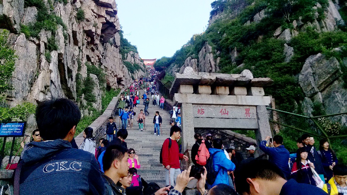 9、升仙坊。這里有可以歇腳的地方,但沒有補給的地方。如果你體力可以的話,可以一鼓作氣到南天門,因為距離不遠,你會非常欣喜的看到泰山大本營就在眼前。