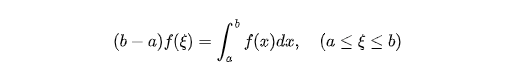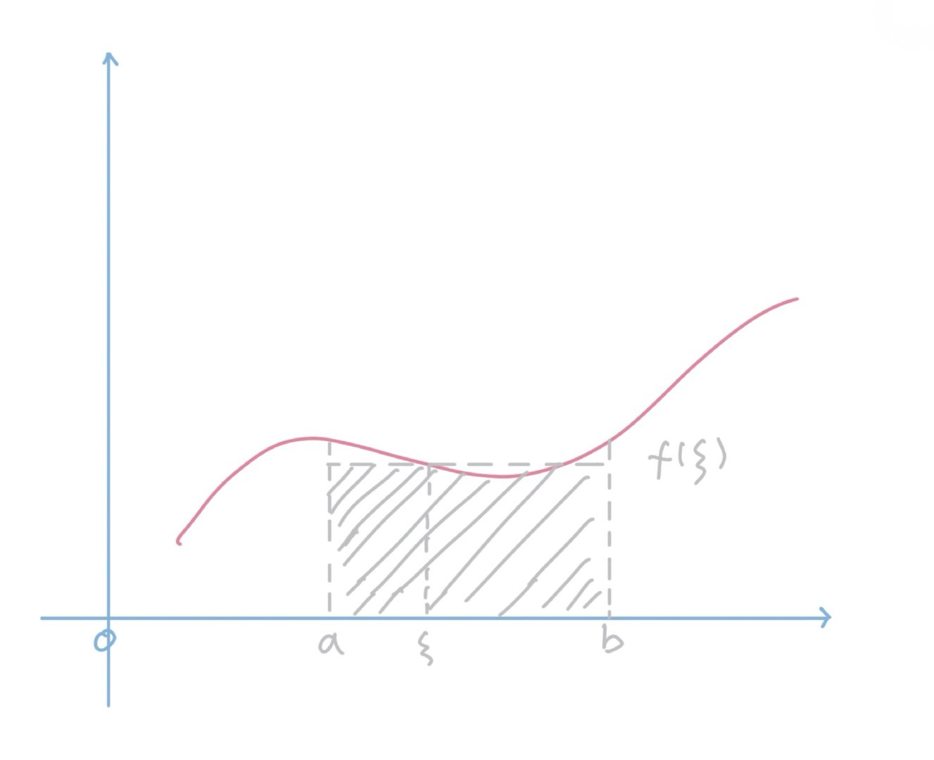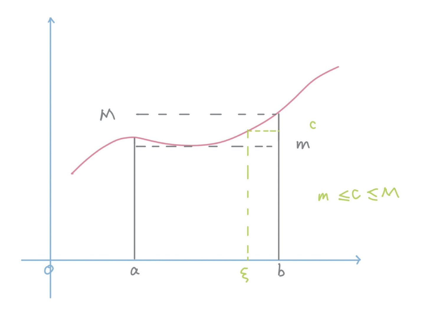 這個式子看成一個整體,它的值位于函數在區間的最大值和最小值之間。根據連續函數的介值定理,我們一定可以在[a, b]上找到一點 ξ,使得f(x)在 ξ 這點的取值與這個數值相等,也就是說: