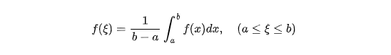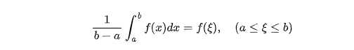 也就是說以 f(ξ) 為高的矩形面積和函數圍成的曲形面積相等,所以它既是矩形的高,也真的是函數在[a, b]上的平均值。