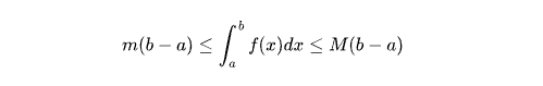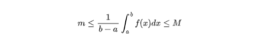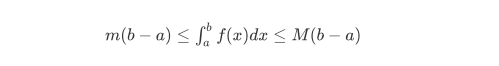 數學證明也很簡單,由于m和M分別是最小值和最大值,所以我們可以得到 m <= f(x) <= M。我們把常數也看成是函數,進行積分,于是可以得到: