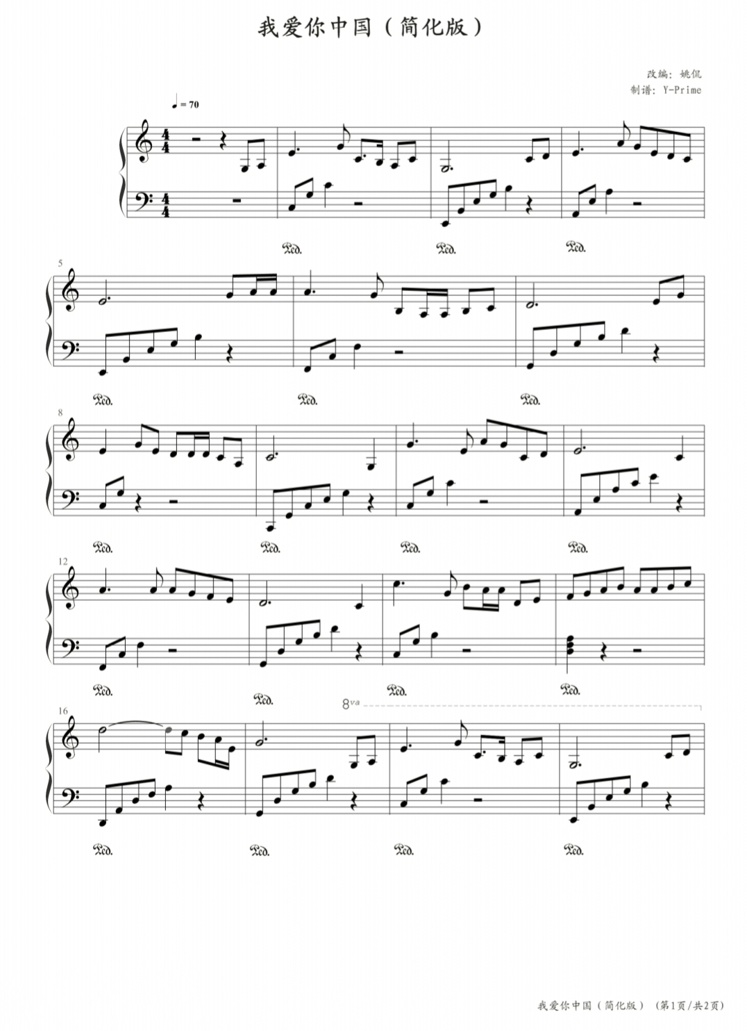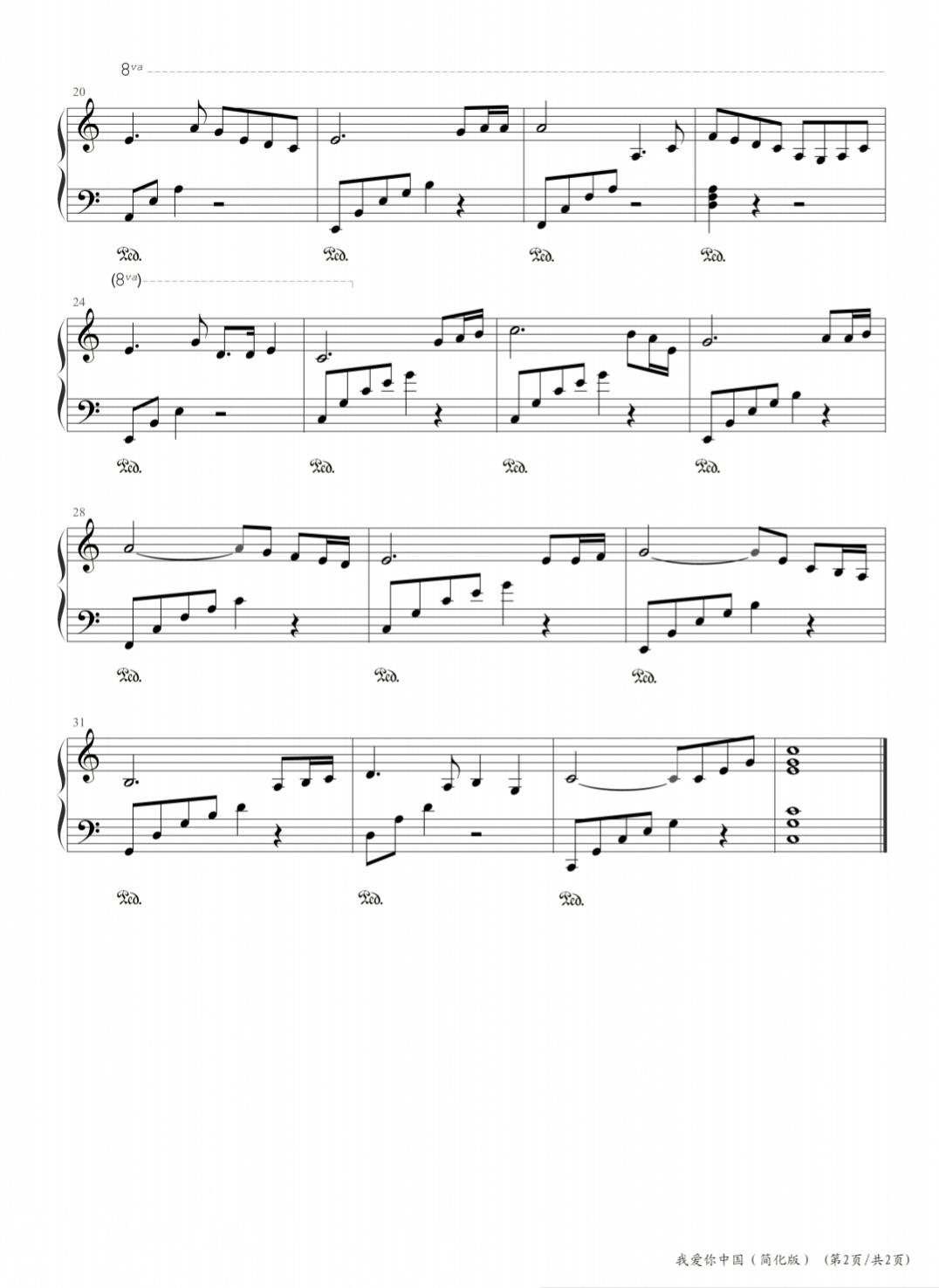 我愛你中國簡譜 我愛你中國的簡譜全版