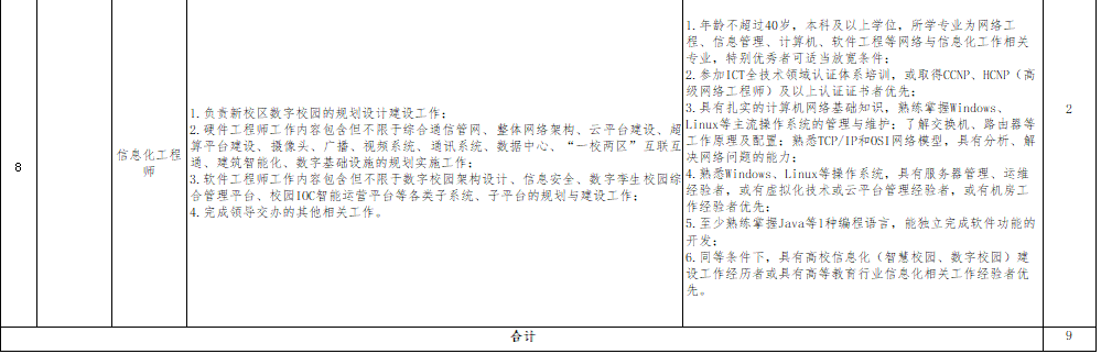 博士后科研工作崗1人,戰略規劃崗1人,售前解決方案工程師1人,運維經理1人。