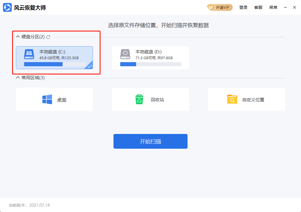 第一步,瀏覽器中輸入相關詞條找到官網下載最新版本的《風云恢復大師》安裝并且打開,windows host文件在C盤選擇掃描c盤即可;