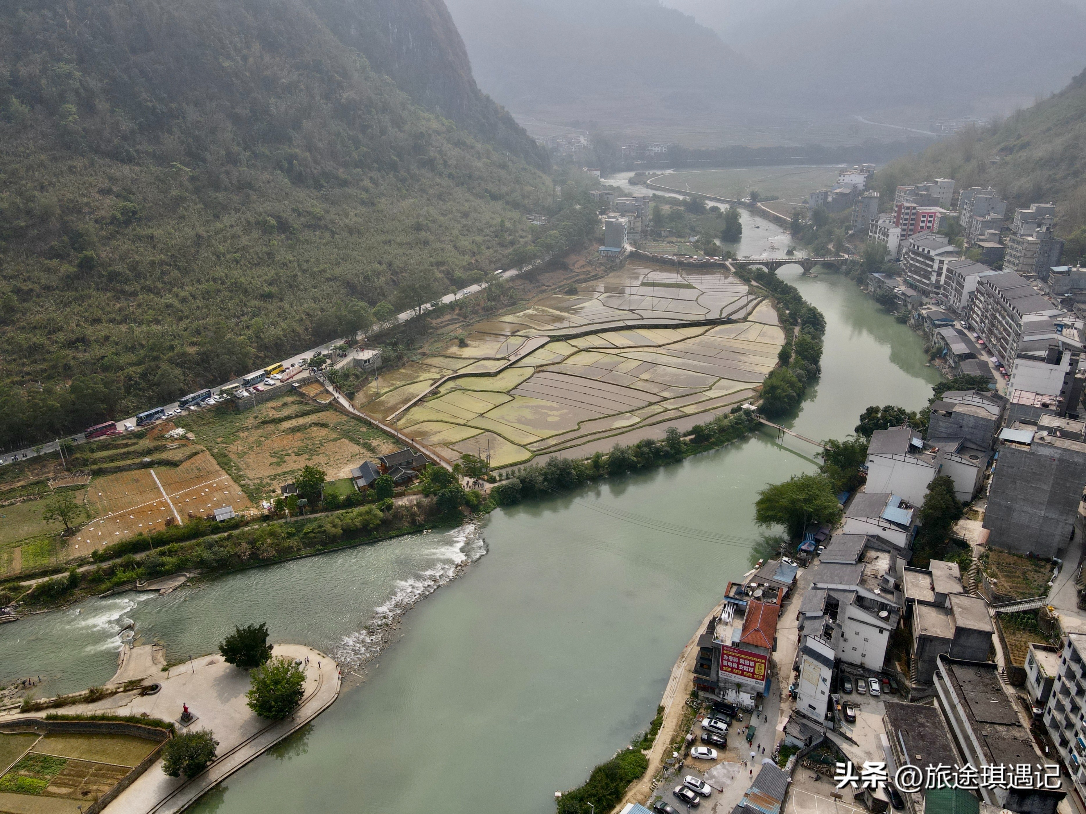 命河的發源地是巴馬的那社鄉。我們眼前這條河就是命河,從空中俯瞰這片廣袤的田野,蜿蜒曲折的河道似巨型草書“命”字,所以有了命河這個稱呼,這似乎也與長壽之鄉不謀而合。