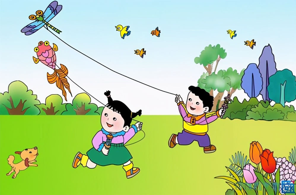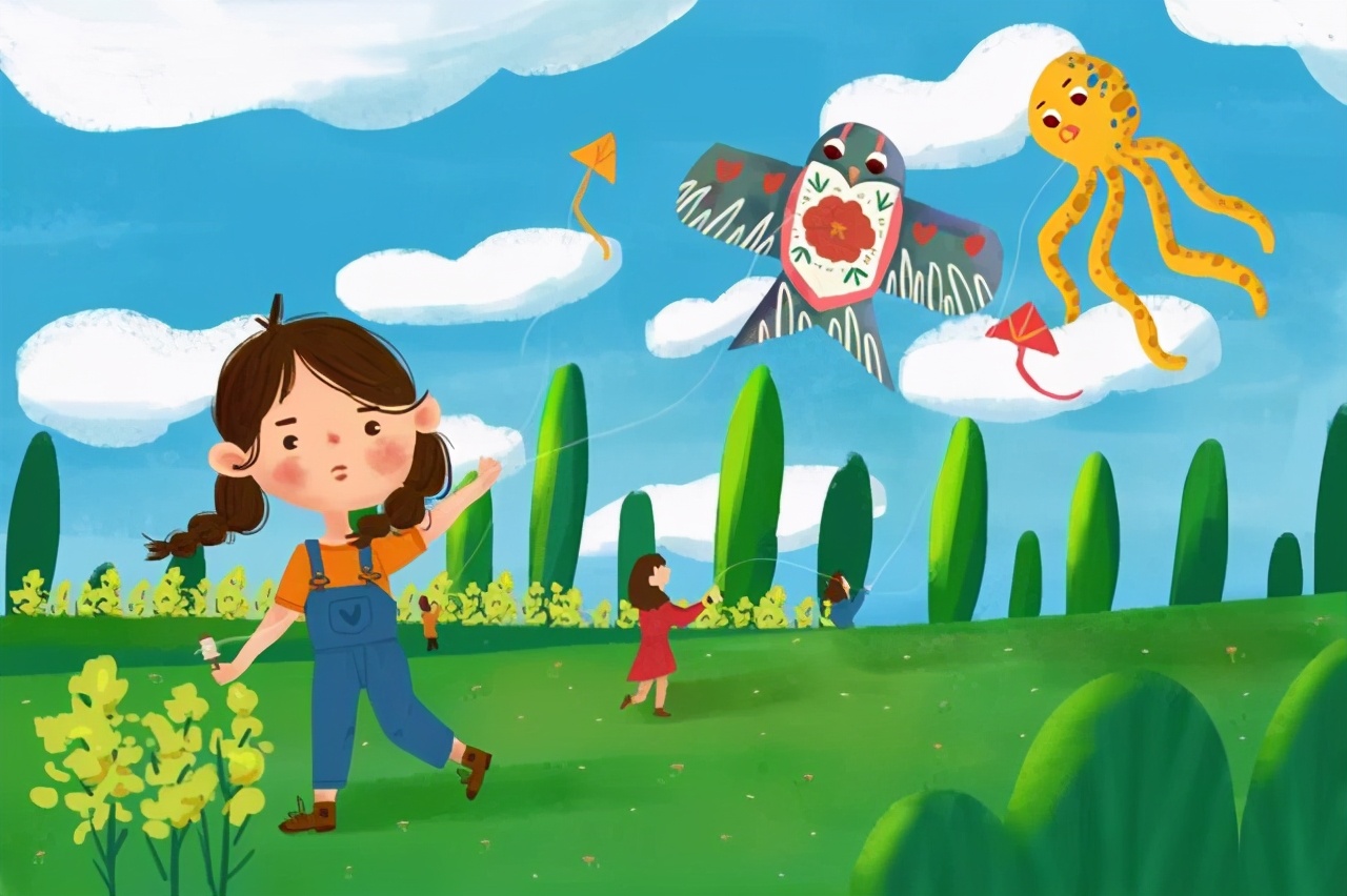 看圖寫話:《放風箏》范文兩篇,春天來了,讓風箏飛起來,春天跟孩子一塊兒放風箏。