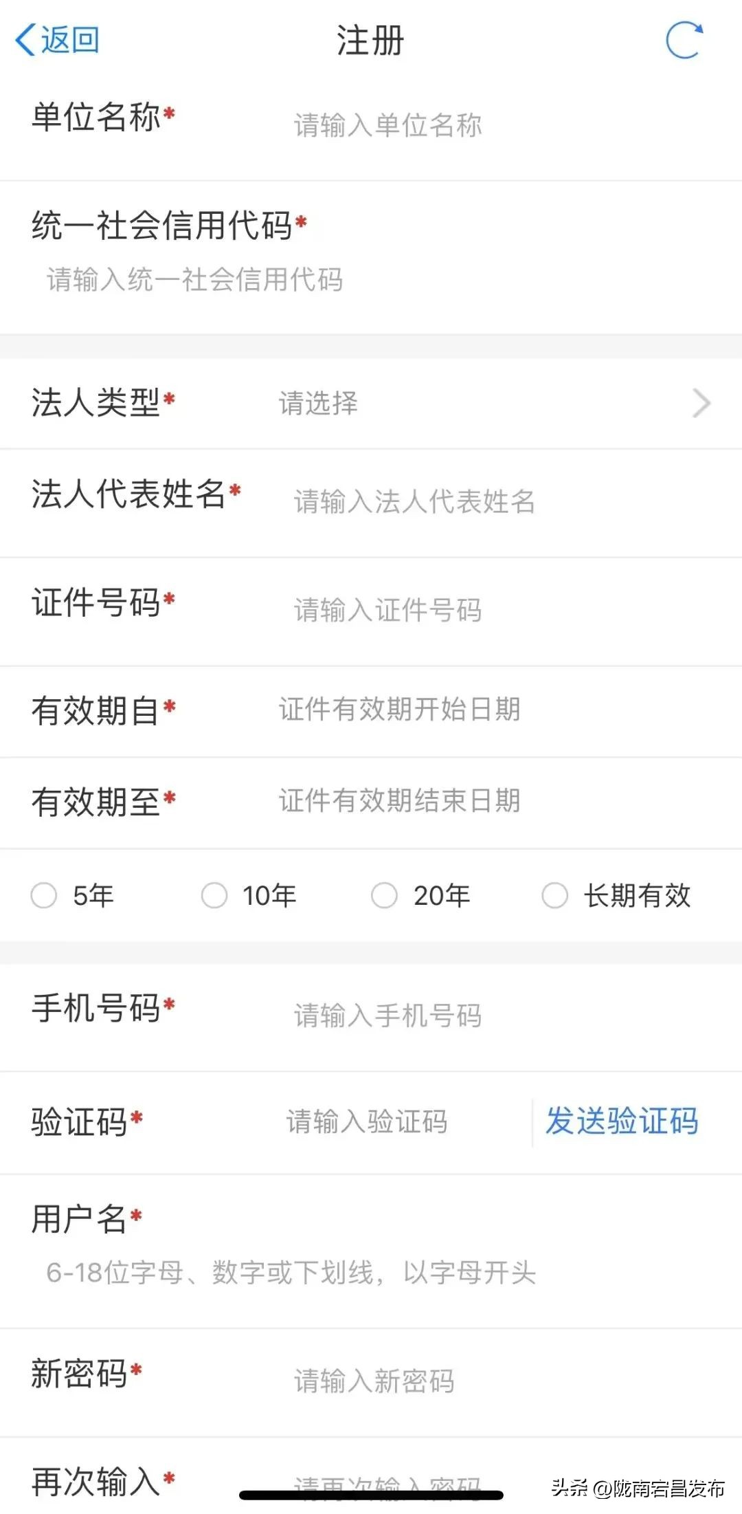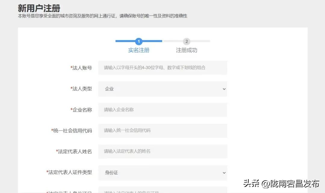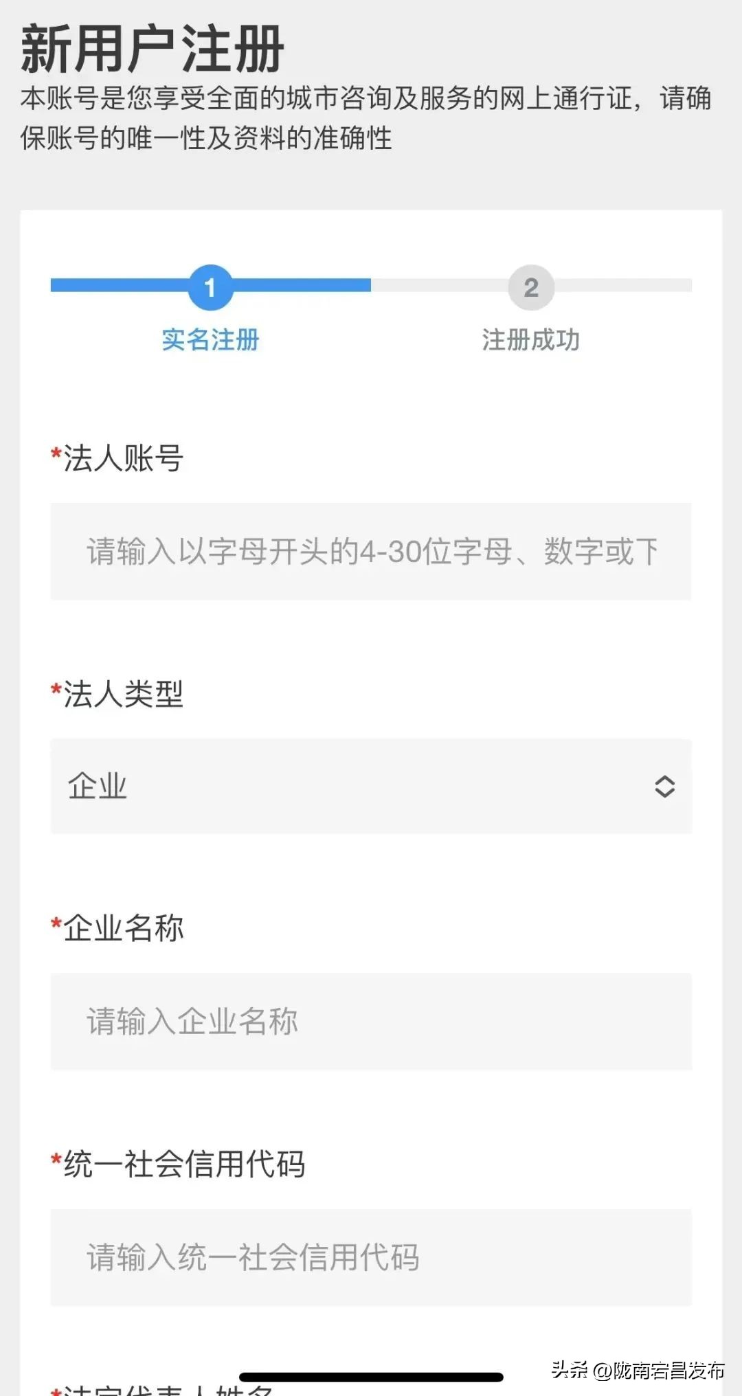 用戶根據個人信息或營業執照相關信息依次填寫。