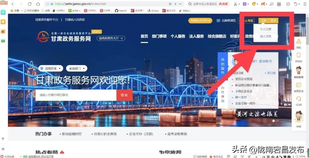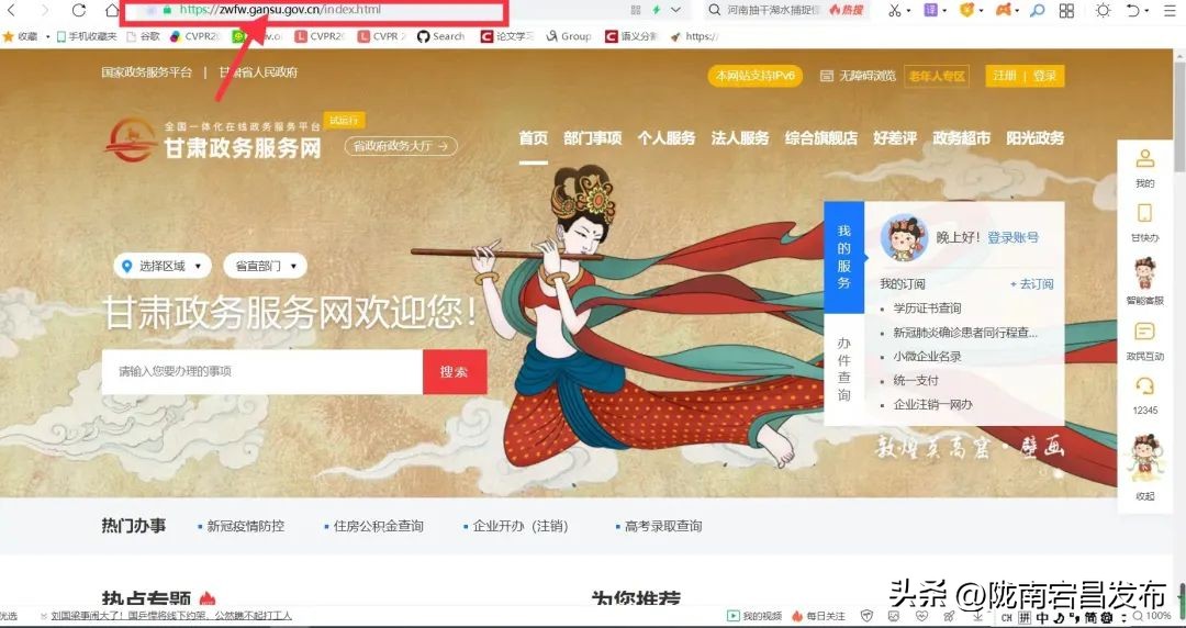連接互聯網,瀏覽器搜索“甘肅政務服務網”或者直接復制鏈接訪問http://zwfw.gansu.gov.cn/