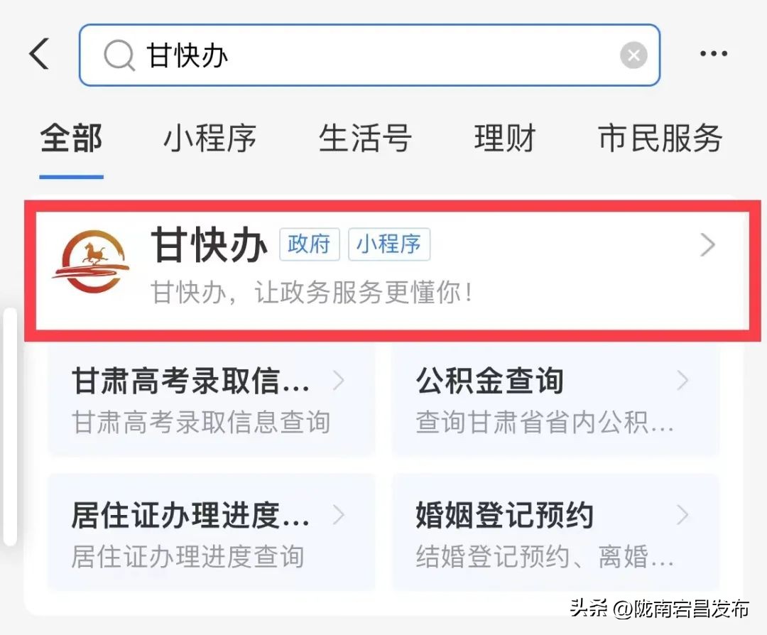 方式三:在支付寶搜索框輸入甘快辦,進入甘快辦支付寶小程序。