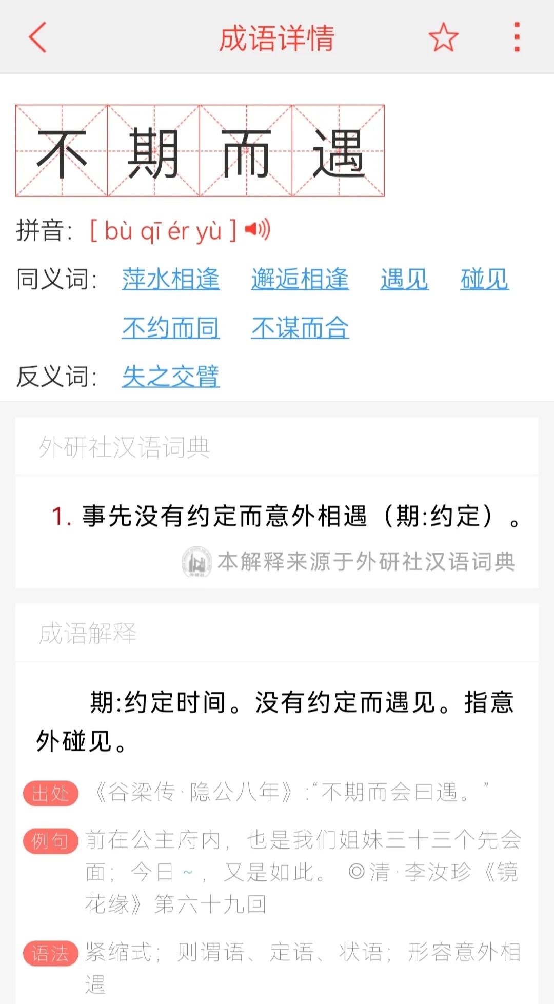 總之最初的“不期而遇”,是解釋“遇”字的用法,有意思的是后人用了“遇”字的引申義,強調了事件。
