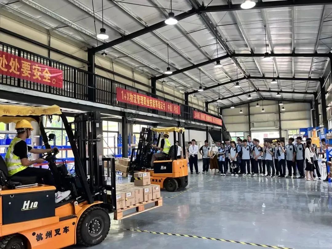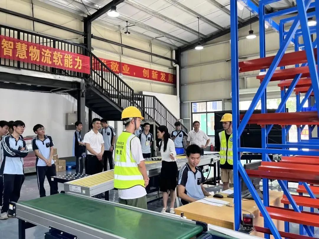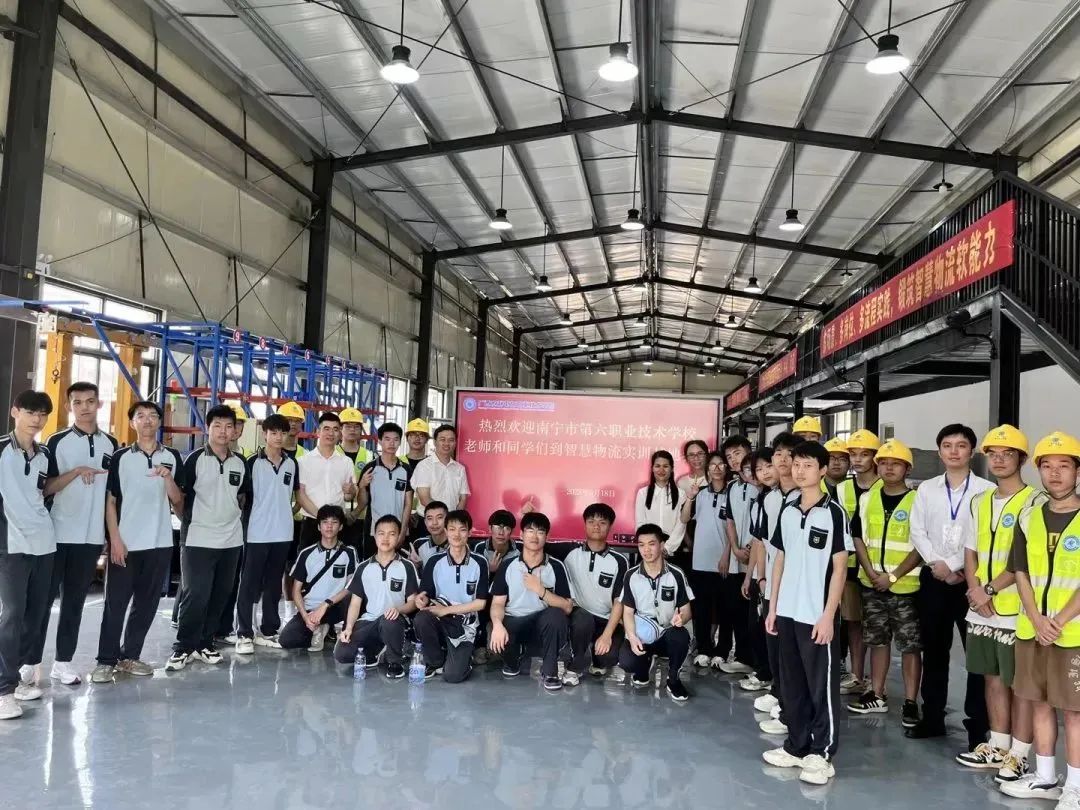 經濟管理學院副院長賀敏超,教師黃沫、羅成昭帶領南寧市第六職業技術學校老師、同學參觀智慧物流實訓基地。