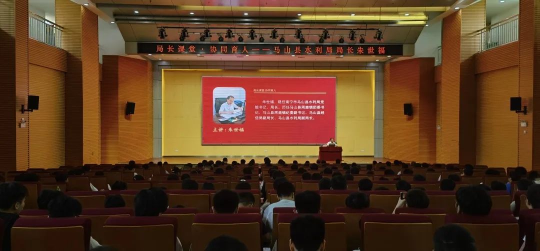 水利工程學院還邀請馬山縣水利局黨組書記、局長朱世福為在校學生開展題為《努力奮發,勵志踐行——爭做堪當重任的新時代高質量發展的青年水利人才》的講座。