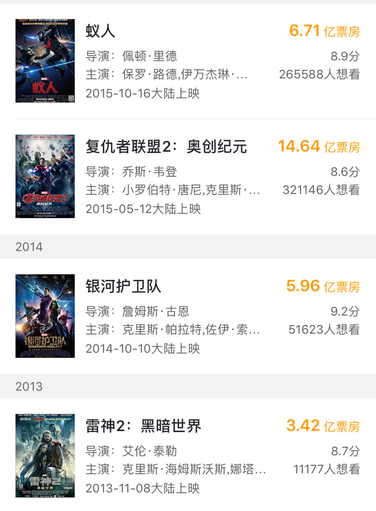 漫威電影宇宙 漫威電影宇宙全系列