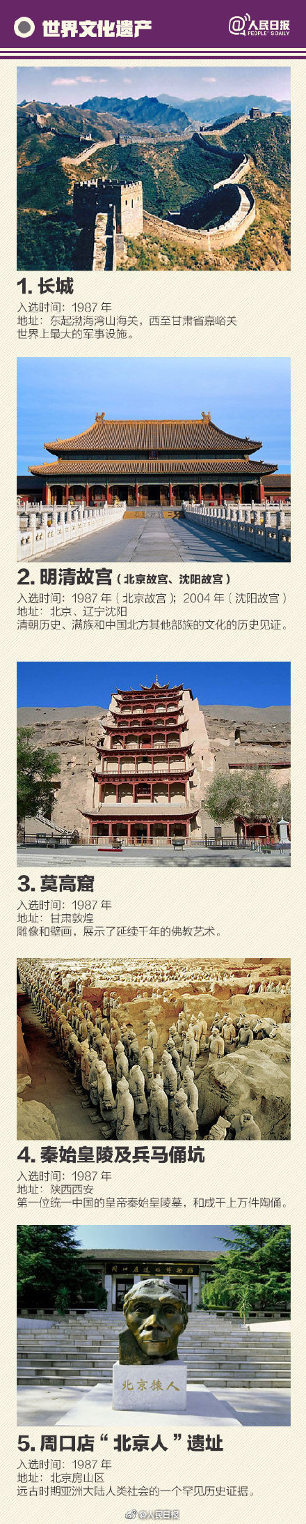 中國世界遺產 中國56處世界遺產名錄一覽表