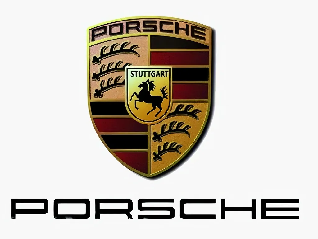 保時捷的標志像徽章一樣,凸顯了其獨特的風格和精致的工藝。金黃色的馬頭標志與黑色背景形成鮮明對比,象征著豪華、速度和卓越的工程。