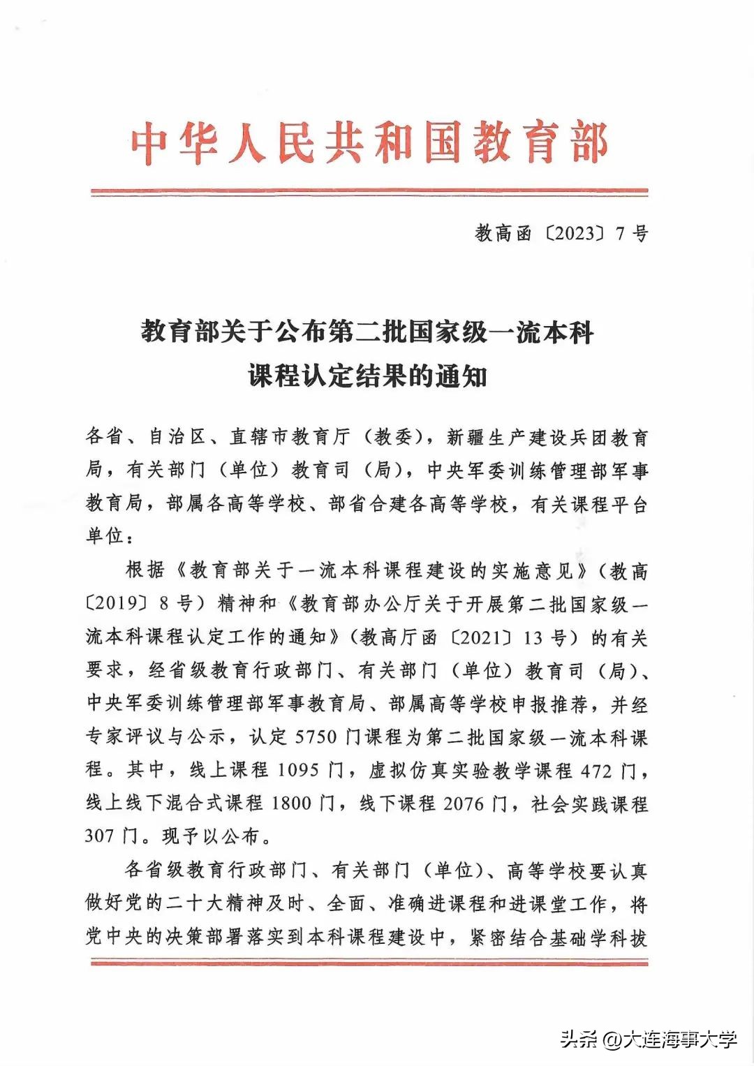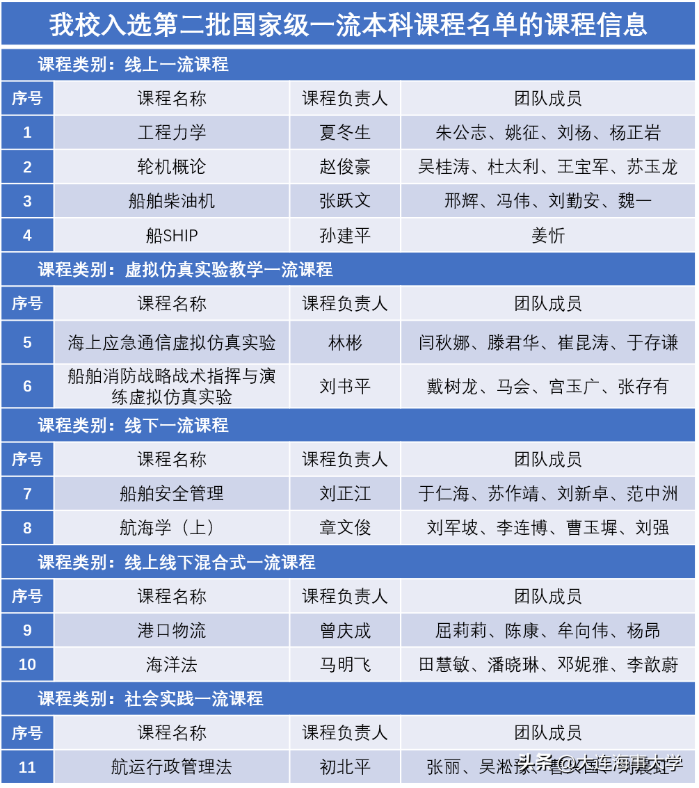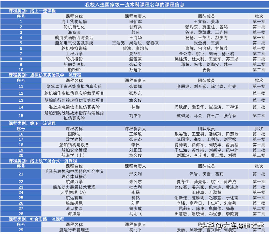 附:大連海事大學國家級一流本科課程完整名單