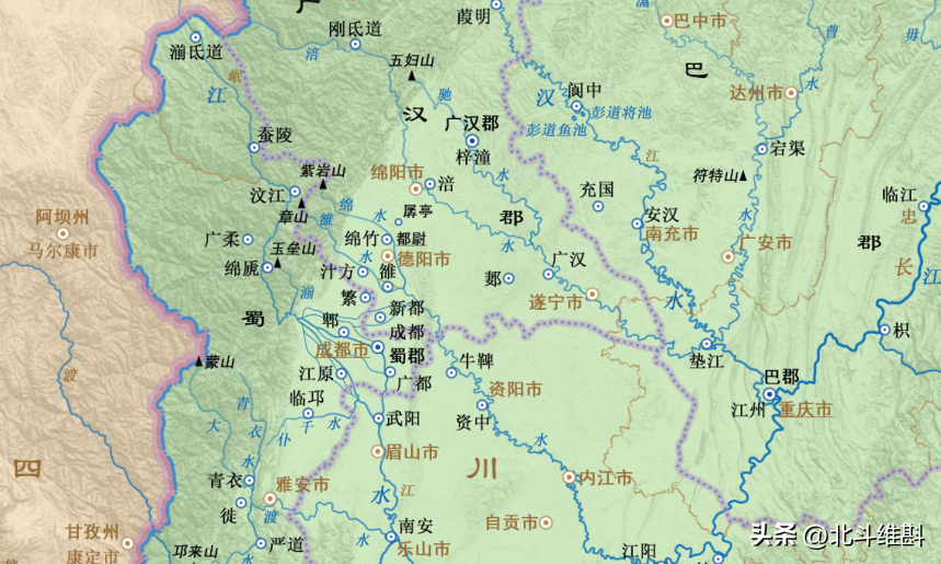 秦朝滅亡后,漢朝建立。而建立漢朝的劉邦恰恰就是以漢中、巴蜀為根據地起家的。漢朝時期的巴蜀之地總體上延續了巴蜀二郡的區劃模式,后來又增加了新郡,例如是廣漢郡(今梓潼)、犍為郡(今宜賓)、越雟郡(今邛都)。漢武帝時期,在西南地區設置了益州刺史部,而巴蜀二郡都屬于益州刺史的糾察范圍。不過,這并未改變巴蜀分立的局面。