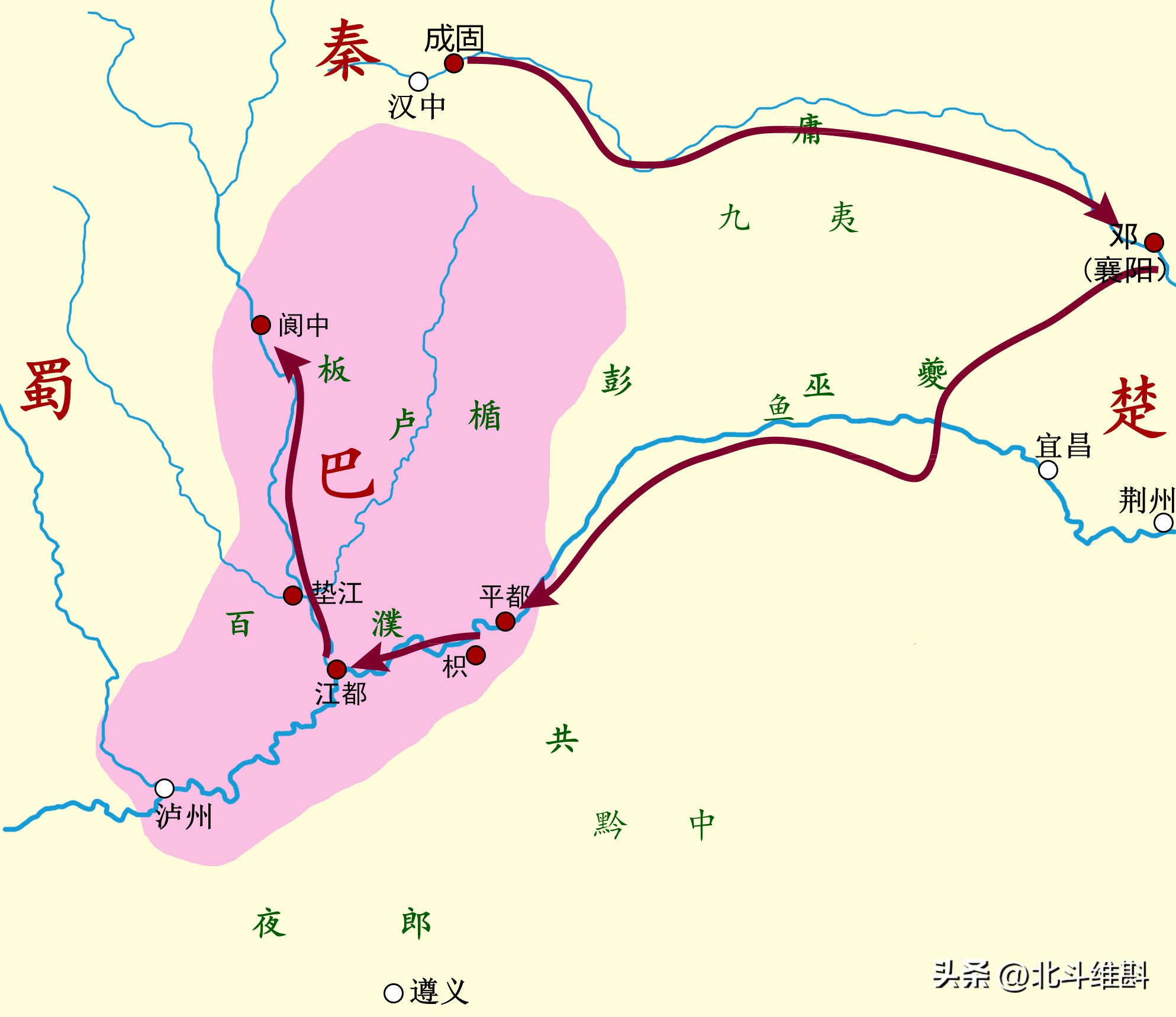 巴蜀雖然同處于四川盆地,但是兩國并未和諧相處,而是戰爭不斷,并成為了世仇。前316年,蜀國進攻自己的分封國——苴國,苴侯出奔到巴,向秦求救。于是秦國就派遣司馬錯進攻蜀國,古蜀文明正式滅亡。隨后,秦軍又接連消滅了苴國和巴國,將整個巴蜀大地納入了疆域范圍。此后,秦國設置了巴蜀二郡進行了管轄。經過秦國的建設,巴蜀之地成為了“天府之國”,巴蜀的糧食為秦國的統一戰爭提供了保障,可以說是全國的大后方。