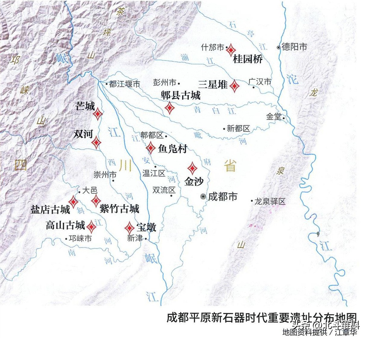 四川和重慶并稱“巴蜀大地”,位于四川盆地一帶。在先秦時期,成都平原出現了古老而神秘的文明——古蜀文明,創造了輝煌的寶墩文化、金沙灘文化和三星堆文化。雖然古蜀國早已消失于歷史,但是“蜀”字卻流傳下來,成為了四川兩千多年不變的代稱。根據考證,“蜀”最早出現于甲骨文中,本義指“野蠶”,這或許和“蠶蟲”的傳說有關。