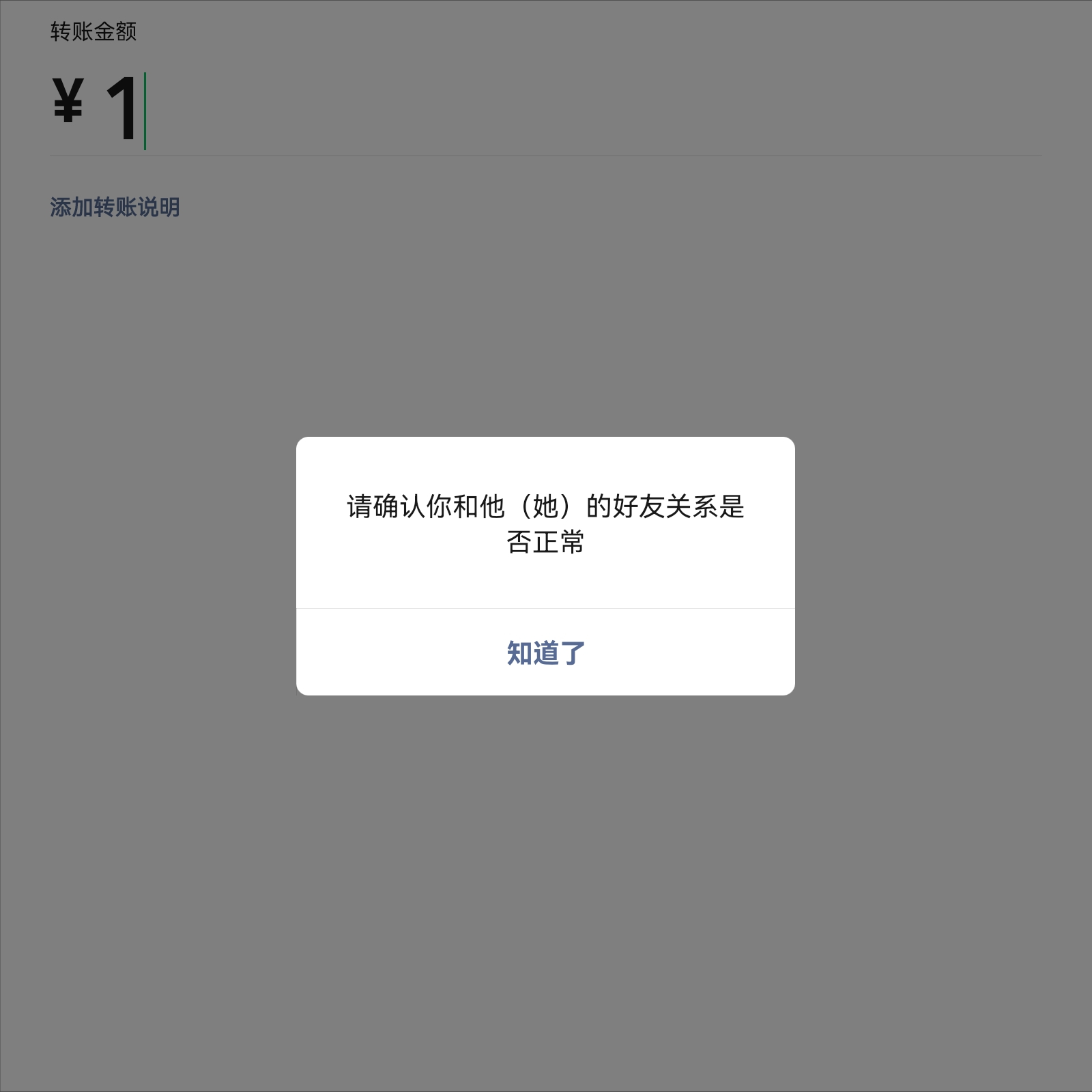 最方便最快捷的方法,嘗試給對方轉賬,輸入轉賬金額,點擊轉賬:
