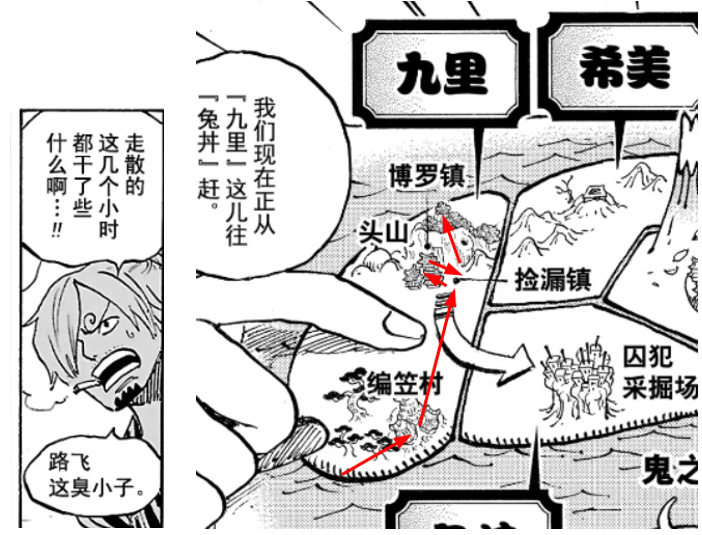 7. 路飛看到凱多在博羅鎮,于是前往;接著路飛被山治吐槽這走散的幾個小時都干了些什么;