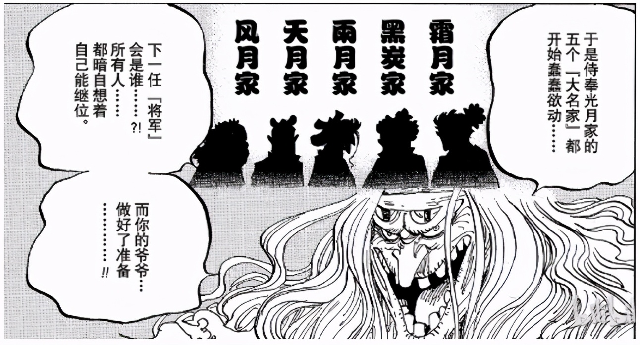 我猜想在過去5個地方的大名應該分別來自風月家,天月家,雨月家,黑炭家和霜月家。但后來為何九里變成不法之地(在御田統治前),而霜月家占了兩個地方,不得而知,尾田也沒有解釋。