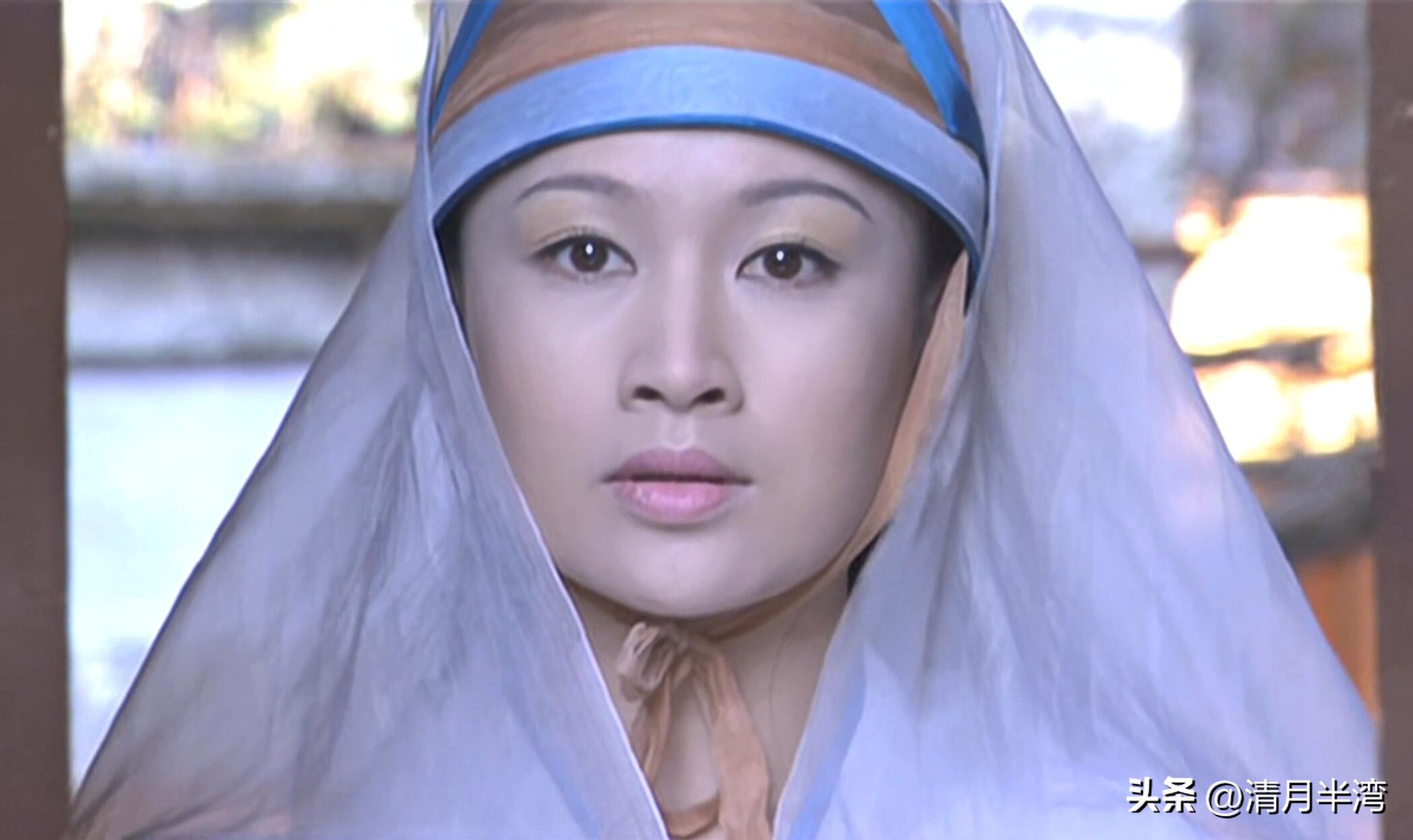 在段譽急促地敲門聲中,頭戴高筒帽,身穿紗質淺色道姑服的刀白鳳開門的那一瞬間,恰如書中形容的那般,在日光下晶瑩華彩,模樣扮相都像極了畫中的菩薩。
