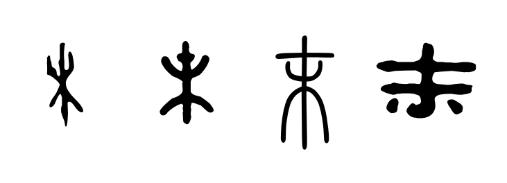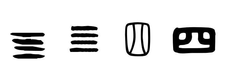 需要指出的是,,下面圖片中,第一個字為甲骨文,第二個字為金文,第三個字為小篆,第四個字為隸書。