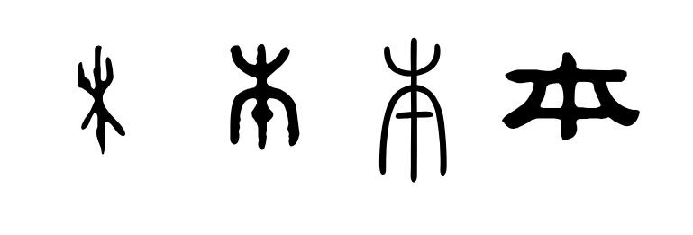 “本”字在“木”子的下部加指事符號,表示樹的根部。