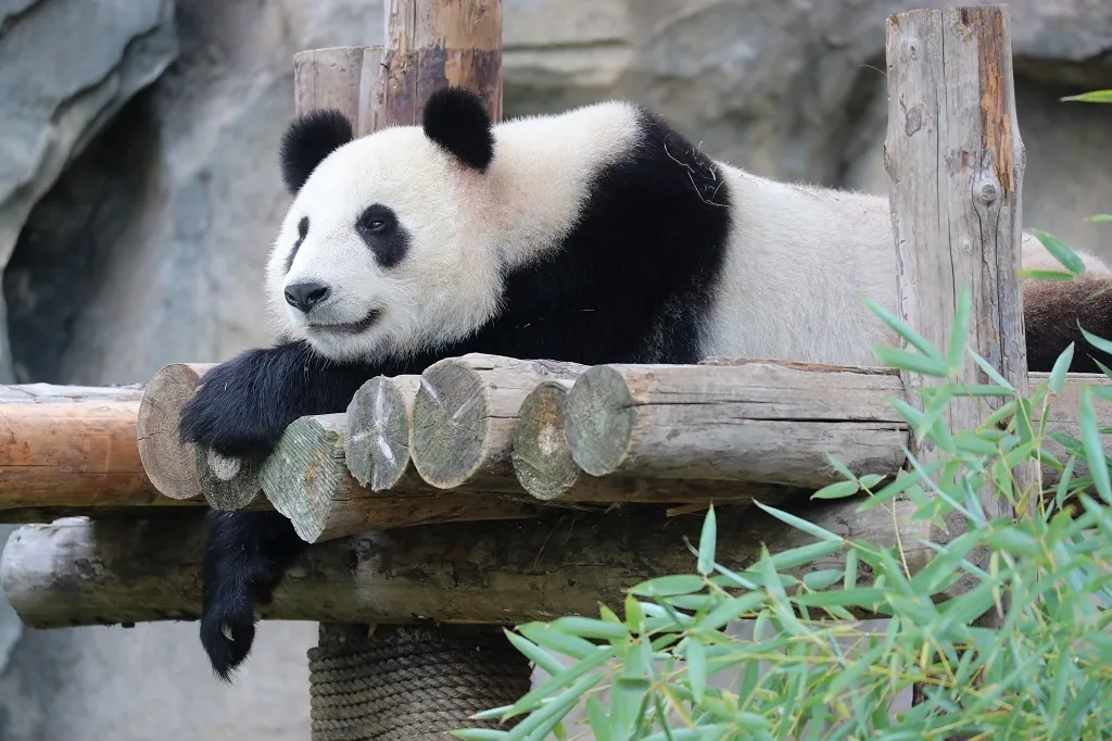 在我踏入園區的那一刻,一只大熊貓引起了我的注意。它懶洋洋地趴在樹上,無憂無慮地吃著竹子。看著它可愛的模樣,我忍不住發出了一聲&34;哇!&34;是的,我終于親眼見到了傳說中的熊貓!
