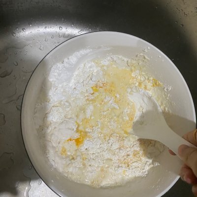 5、打入一個雞蛋,加入清水攪拌。