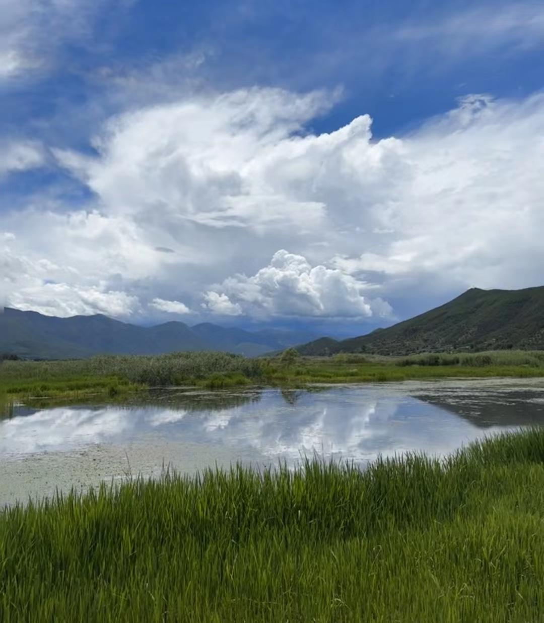夏季6月--9月是雨季,時雨時晴的,滿湖海藻花,有機會見到絕美雙彩虹。草海一片綠色,很好看。