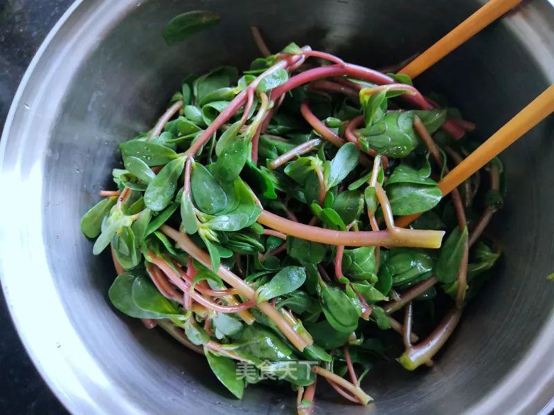 1. 嫩嫩的馬齒莧擇洗凈。