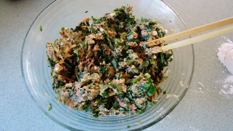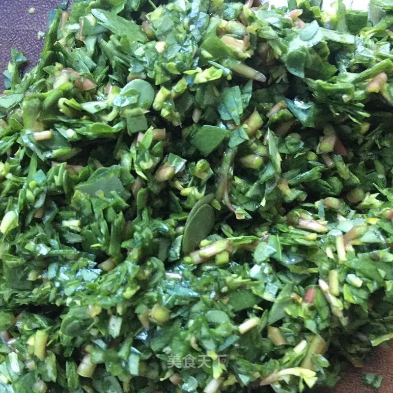 豬肉碎500克馬齒莧250克蔬菜油適量喜馬拉雅鹽適量姜少許蒜少許蔥少許十三香少許面團適量