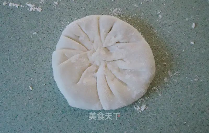 6. 把攪拌好的餡放上搟好的面皮上,像包包子一樣包好。