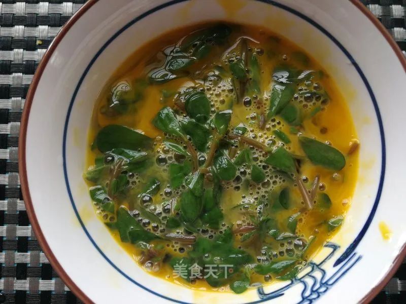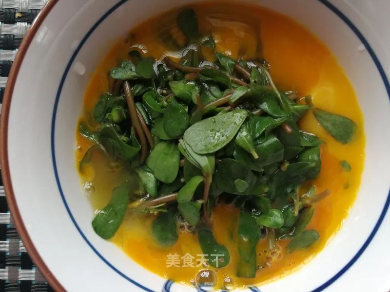 5. 切碎的馬齒莧放雞蛋內。