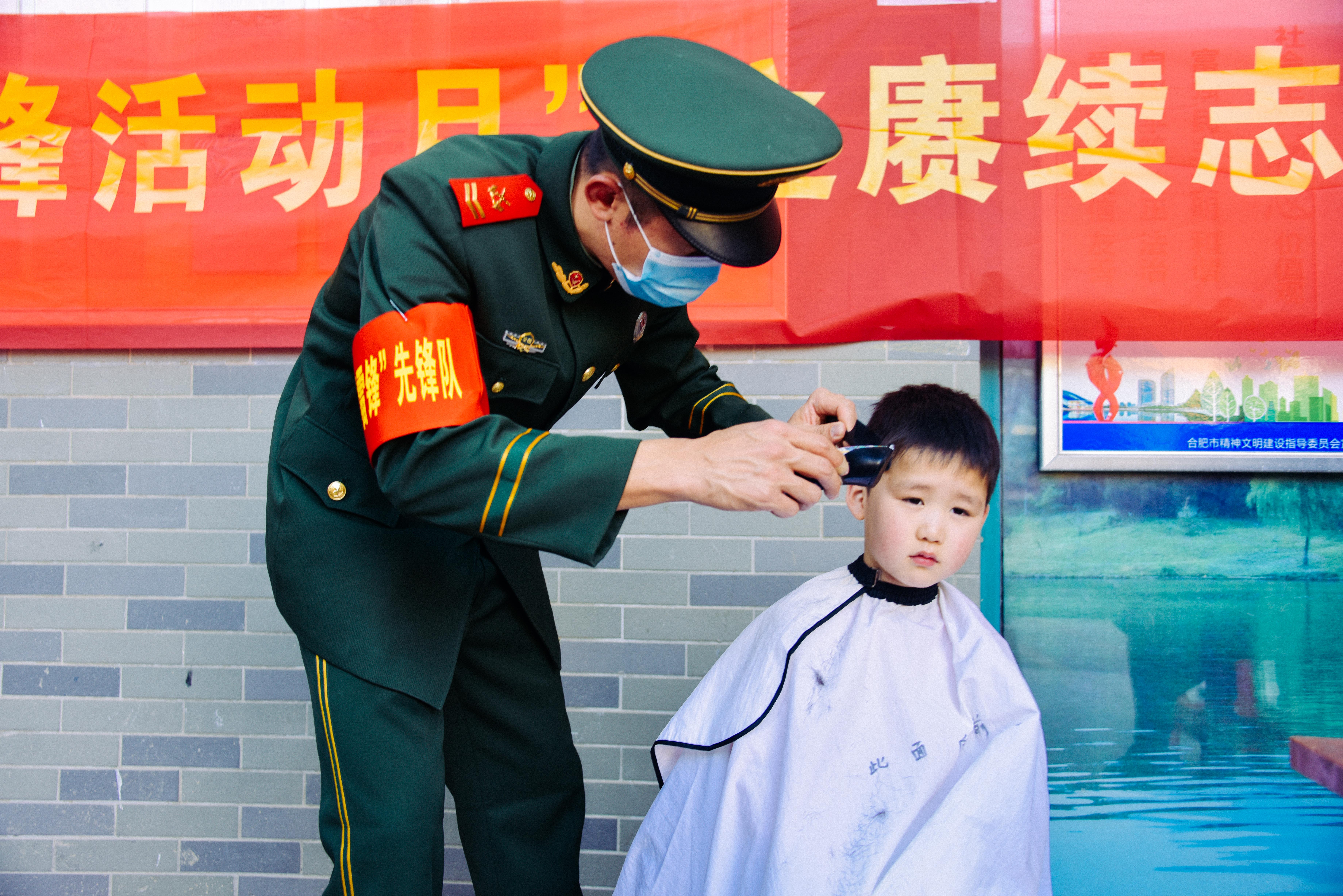 官兵們為社區居民義務理發