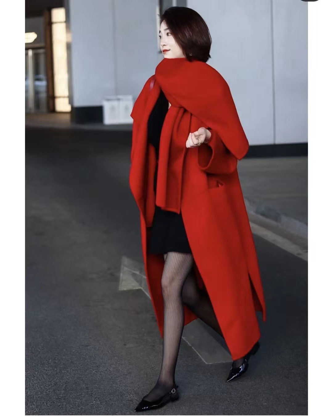 紅色上身真的比想象中顯氣質,皮膚白的姐妹們更應該大膽嘗試。可拆卸的圍巾讓大衣有了更多可能性,內搭黑色針織短裙+絲襪,這套出街太驚艷了?