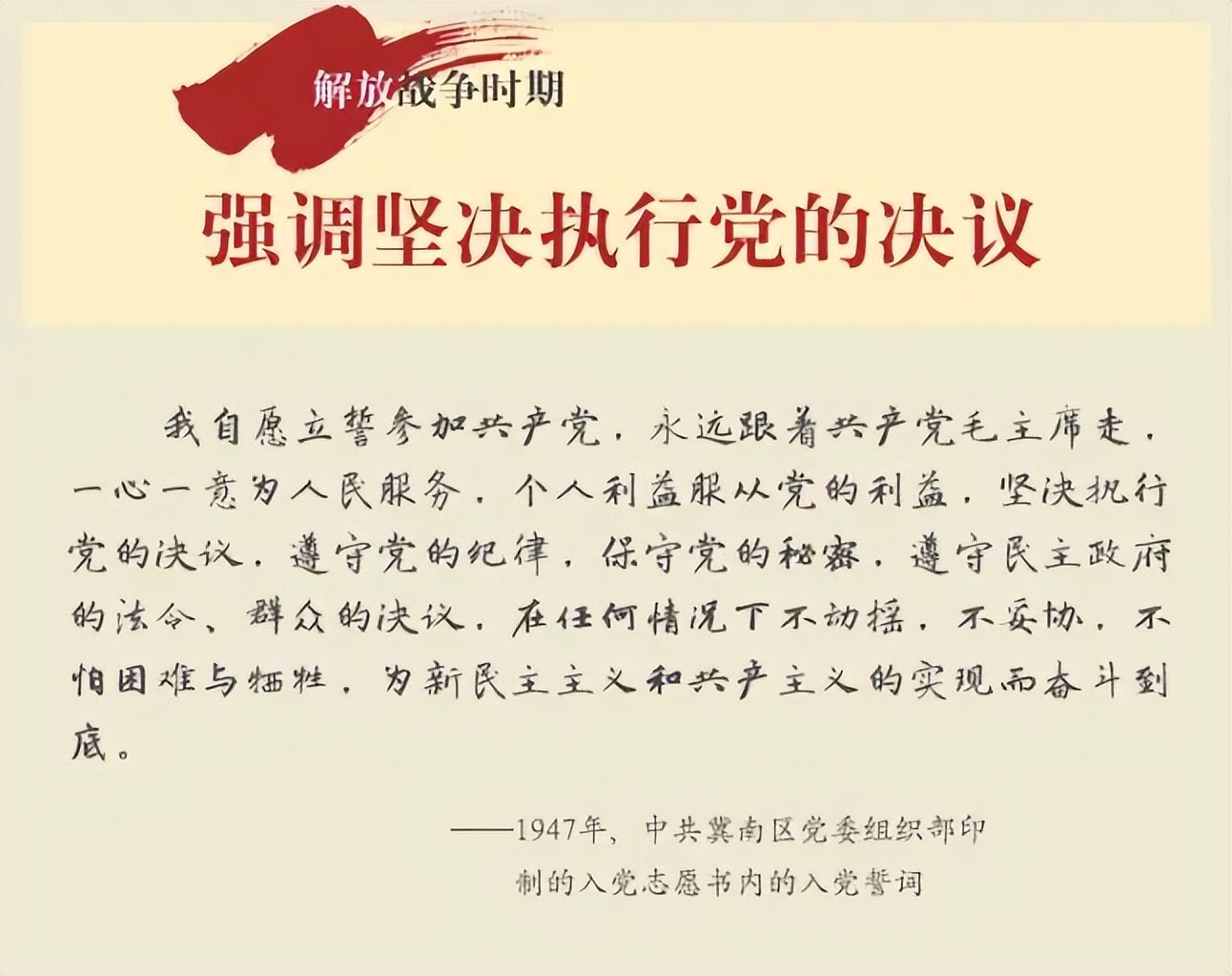 ——1947年, 中共冀南區黨委組織部印制的入黨志愿書內的入黨誓詞