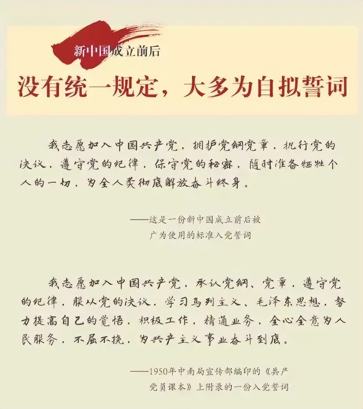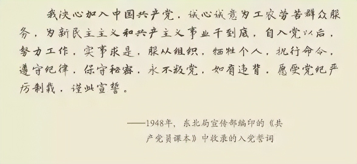 ——1948年, 東北局宣傳部編印的《共產黨員課本》中收錄的入黨誓詞