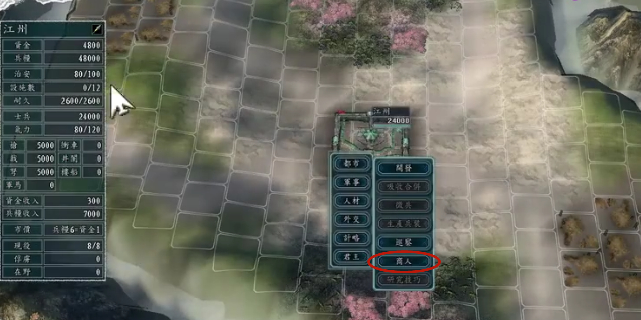 其次便是大名鼎鼎的雙城炒糧大法了,大致就是利用兩座城市間進行金錢與糧草的兌換,再將便宜買來的糧草運送至另一座城市并兌換成金錢,如此反復便可在前期迅速積累大量財富,對于玩家們而言擁有了取之不盡的錢糧后要想破局/統一簡直就跟喝湯一樣簡單。