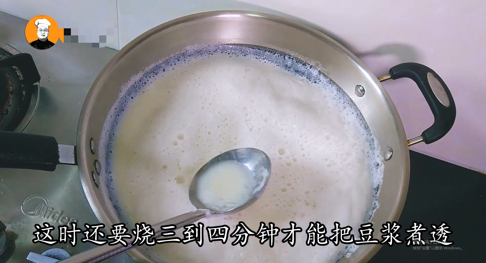 5、豆漿太濃時可以用水稀釋,然后把過濾好的豆漿放入鍋中燒開,要留下1/5的豆漿,等豆漿假沸騰時,再放入余下的豆漿再燒三到四分鐘,因為豆漿沸騰點比較低,在85°左右就沸騰了,這時還要燒三到四分鐘才能把豆漿煮透